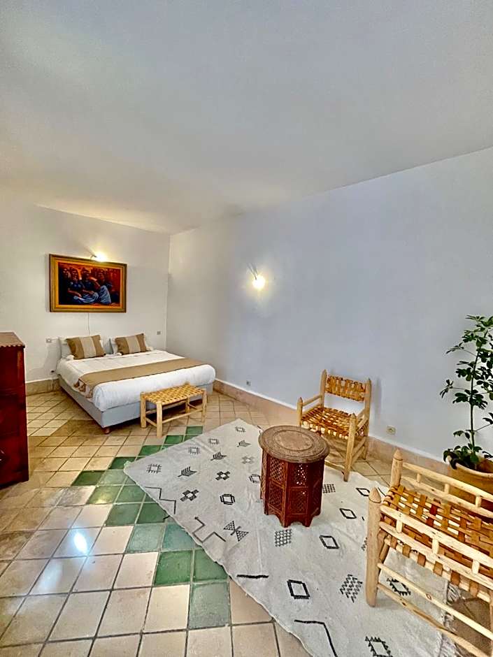 A seating area, a desk, a terrace and a private bathroom are featured in this single room.